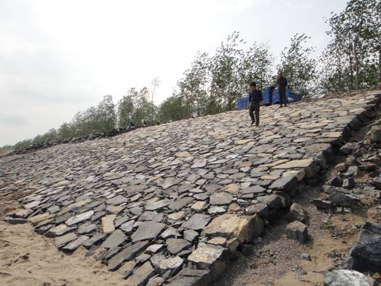 [注:九江長(zhǎng)江江心洲固岸應(yīng)急度汛工程,包括九江縣江新洲1標(biāo)和彭澤縣棉船洲1標(biāo),由我公司中標(biāo)承建。工程主要建設(shè)內(nèi)容為拋石、砼四邊六面框架、干砌石護(hù)坡,項(xiàng)目總投資4000萬元。江新洲和棉船洲大堤共保護(hù)面積130.39 平方公里,保護(hù)耕地12.18萬畝,保護(hù)人口8.39萬人,圩區(qū)內(nèi)土地肥沃,灌溉便利,是江西省的重要棉油生產(chǎn)基地。]