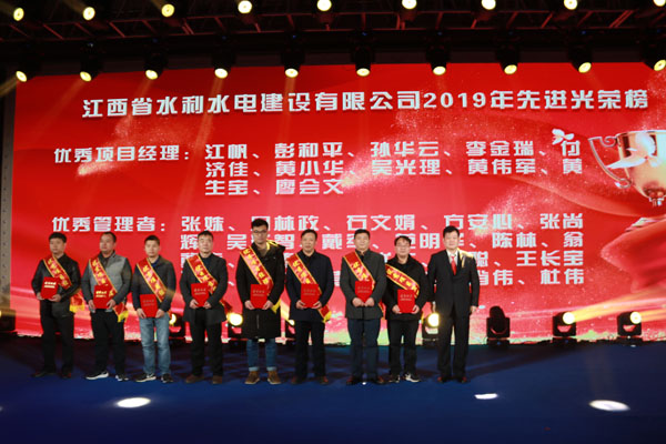 隨后,公司董事長王元旦等領導向潦河灌區(qū)解放閘壩除險加固工程設計施工總承包(EPC)項目、盧旺達RUSUMO瀑布水電站項目等16個優(yōu)秀團隊,彭和平、黃生寶等10位優(yōu)秀項目經理,張姝、張聰?shù)?0位優(yōu)秀管理者和應怡超、程春鋒等40位優(yōu)秀員工予以表彰。感謝他們在過去的2019年為江西水建發(fā)展所作出的貢獻。