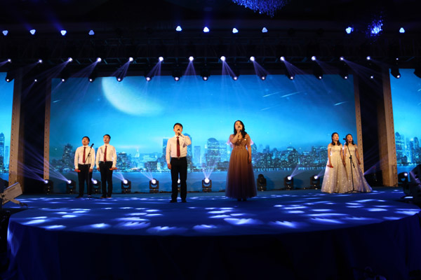 隨后,晚會演出在舞蹈《花開富貴》中拉開帷幕,歌曲聯(lián)唱,獨唱,舞蹈,詩朗誦、魔術、大合唱等文藝節(jié)目輪番上演,整場演出精彩絕倫,高潮迭起。晚會前播放了《2019年工程巡禮》視頻、展現(xiàn)了工程建設是公司生存的命脈,質量與安全是公司發(fā)展的生命線;晚會中播放了《國內外員工拜年》視頻,豐富的表現(xiàn)形式展現(xiàn)了一年來公司取得的豐碩成果和公司員工在工作、生活中的點點滴滴,體現(xiàn)了江西水建人昂揚向上的精神面貌。