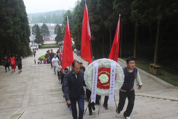 大家認(rèn)真聽(tīng)取講解員講解革命烈士光榮事跡