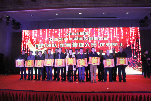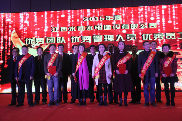 隨后,公司董事長王元旦、總經(jīng)理徐洪良和相關領導向海外公司等10個優(yōu)秀團隊、郭洪有等22位優(yōu)秀管理者和周家煌等30位優(yōu)秀員工進行頒獎,感謝他們在過去的2015年為江西水建發(fā)展所作出的貢獻。