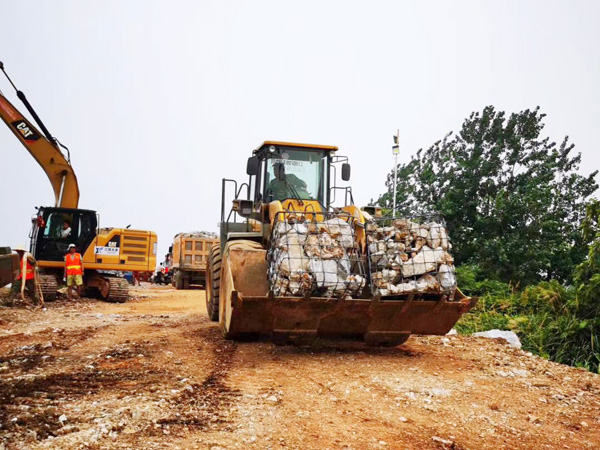 整個封堵工作共動用水建公司400余名施工人員;調(diào)配挖機12臺、裝載機5臺、推土機2臺、運輸車216臺;調(diào)配塊石約3萬立方米、卵石約2500立方米、粘土約9000立方米、1立方米鋼筋籠260多個、3噸重混凝土塊160多塊。